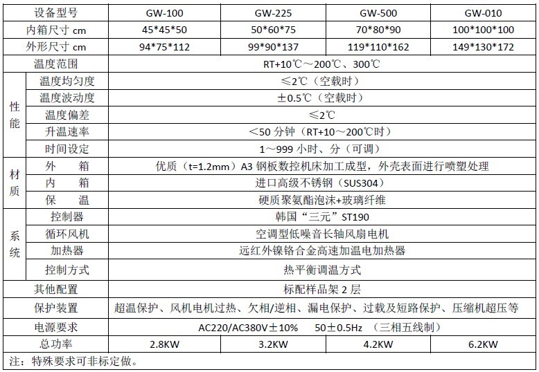 高温试验箱箱体内胆均采用不锈钢镜面板(或拉丝板)氩弧焊制作而成,箱体外胆采用优质钢板喷塑处理,造型美观新颖。热风循环系统由能在高温下连续运转的风机和特殊风道组成,工作室内温度均匀。独立限温报警系统,超过限制温度即自动中断,保证实验安全运行不发生意外。设有大面积钢化玻璃观察窗,供观察工作室状况之用。