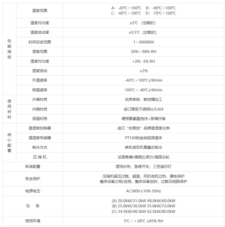 | 降温速率 | 100℃~-40℃≤90min | ||||||