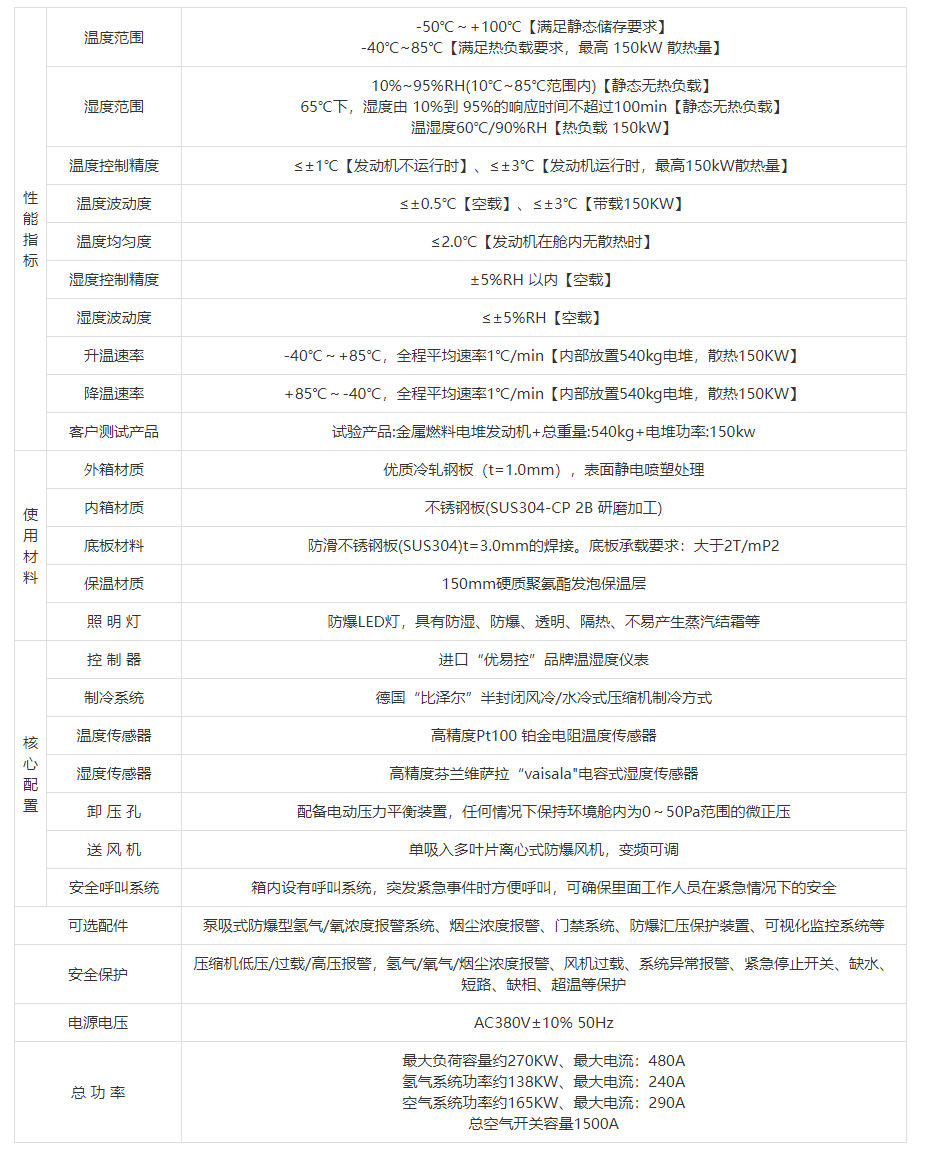| 升温速率 | -40℃~+85℃,全程平均速率1℃/min【内部放置540kg电堆,散热150KW】 | |