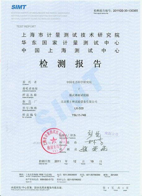 >>淋雨试验箱检测报告-上海计量院-中国电科院