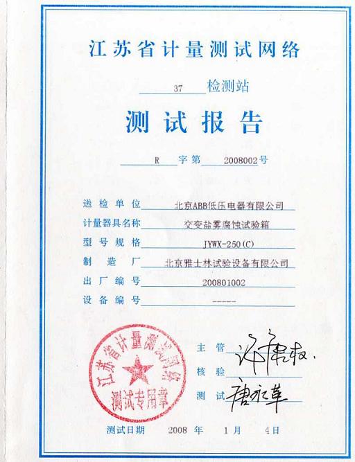 >>盐雾腐蚀试验箱测试报告-江苏计量院-ABB集团