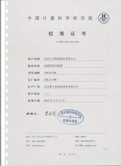 >>ÑÎÎí¸¯Ê´ÊÔÑéÏäУ׼֤Êé-Öйú¼ÆÁ¿Ôº-½­ºÓĻǽ