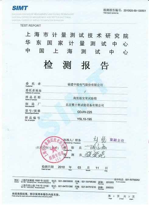 ¸ßµÍν»±äÊÔÑéÏä¼ì²â±¨¸æ-ÉϺ£¼ÆÁ¿Ôº-ÖÐÄÜµçÆø