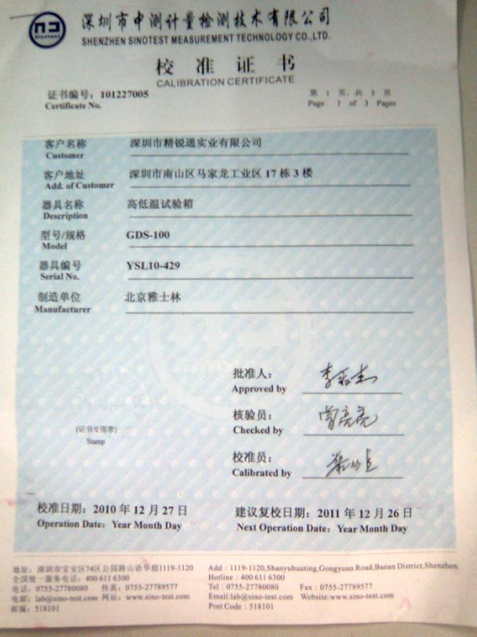 ¡¤¸ßµÍÎÂʪÈÈÊÔÑéÏäУ׼֤Êé-ÉîÛÚÖÐ²â¼ÆÁ¿-ÉîÛÚ¾«Èñͨ