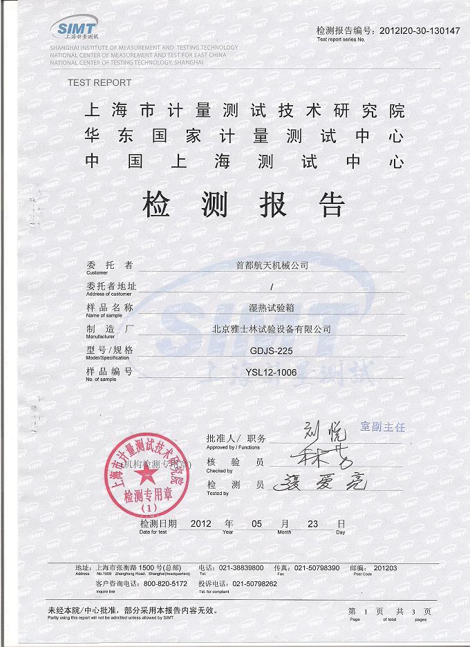 >>¸ßµÍν»±äʪÈÈÊÔÑéÏä¼ì²â±¨¸æ-ÉϺ£¼ÆÁ¿Ôº-Ê×¶¼º½Ìì