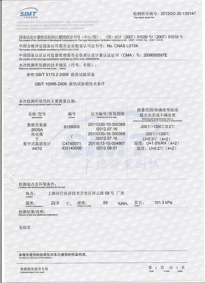 ¸ßµÍν»±äʪÈÈÊÔÑéÏä¼ì²â±¨¸æ-ÉϺ£¼ÆÁ¿Ôº-Ê×¶¼º½Ìì