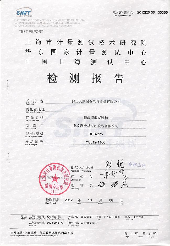 ¡¤ºãκãʪÊÔÑéÏä¼ì²â±¨¸æ-ÉϺ£¼ÆÁ¿Ôº-ÌìÍþ±£±ä
