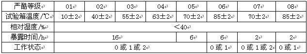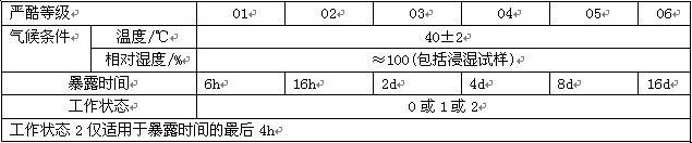 ºãκãʪÊÔÑéÏäÊÔÑùÔÚºãÓ¦Á¦×´Ì¬±©Â¶ÆÚ¼ä£¬Î¶ȱ仯Ӧʮ·Ö»ºÂýÒÔ·ÀÖ¹ÊÔÑùË𻵡£ÓÃÌõ¼þÊÔÑé·½·¨11»ò12ʱ£¬Î¶ȱ仯½×¶ÎÓ¦±£³Ö×î´óµÄÏà¶Ôʪ¶È£¬²¢ÔÚÓйرê×¼ÖÐ˵Ã÷ÊÔÑùÉÏÊÇ·ñÔÊÐí³öÏÖÄý¶¡£ºãκãʪÊÔÑéÏäÊÊÓÃÓÚº½¿Õº½Ìì²úÆ·¡¢ÐÅÏ¢µç×ÓÒÇÆ÷ÒÇ±í¡¢²ÄÁÏ¡¢µç¹¤¡¢µç×Ó²úÆ·¡¢¸÷ÖÖµç×ÓÔªÆø¼þÔڸߵÍλòʪÈÈ»·¾³Ï¡¢¼ìÑéÆä¸÷ÐÔÄÜÏîÖ¸±ê¡£ Ìõ¼þÊÔÑé10·½·¨£ºµÍΣ¨ÏÂͼΪÌõ¼þÊÔÑé·½·¨10µÍεÄÑÏ¿áµÈ¼¶±í£©