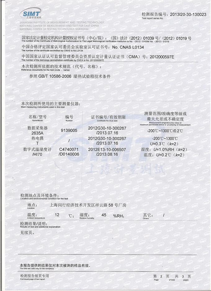 ¡¤ºãκãʪÊÔÑéÏä¼ì²â±¨¸æÄ£°åÏÂÔØ--ÉϺ£¼ÆÁ¿Ôº