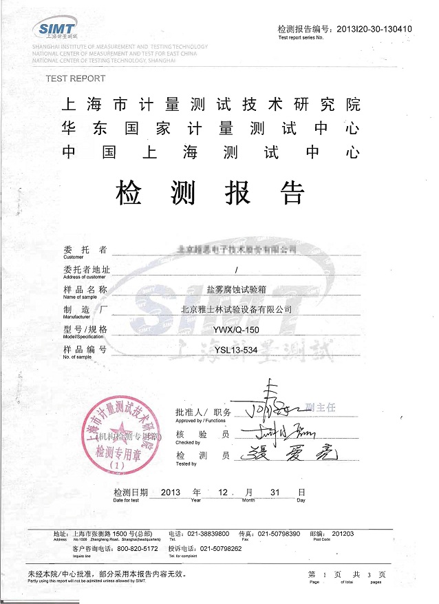 ÑÎÎí¸¯Ê´ÊÔÑéÏä¼ì²â±¨¸æÄ£°åÏÂÔØ--ÉϺ£¼ÆÁ¿Ôº