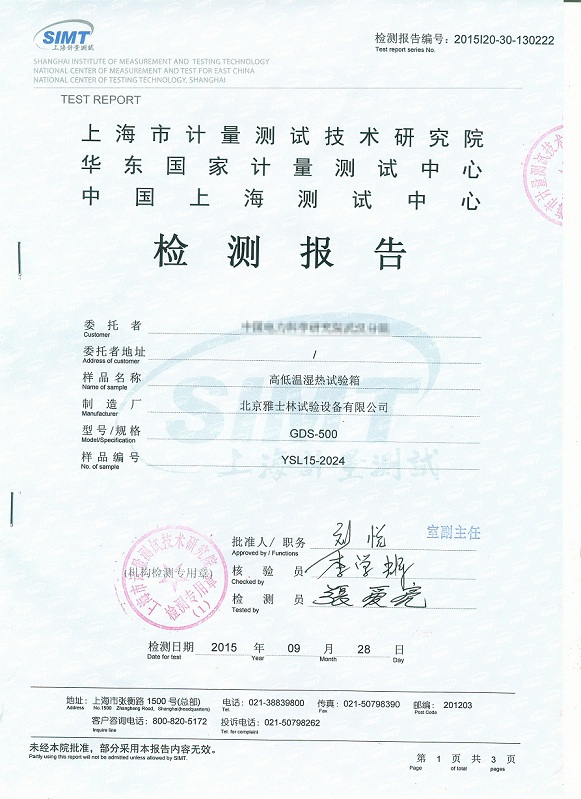 ¸ßµÍÎÂʪÈÈÊÔÑéÏä¼ì²â±¨¸æÄ£°åÏÂÔØ--ÉϺ£¼ÆÁ¿Ôº