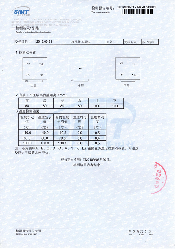 ¸ßµÍÎÂÊÔÑéÏäÔÚÊ×´ÎͶÈëʹÓÃǰ£¬Ó¦¶Ô¿É·´Ó³É豸ÐÔÄܵÄÏà¹Ø²ÎÊý½øÐÐÏêϸȷÈϼ°²âÊÔ£¬ÔÚÈÕ³£Ê¹ÓÃÖÐÔòÓ¦ÒÀ¾ÝËùʹÓõÄÊÔÑé·½·¨½øÐжÔÊÔÑé²ÎÊýµÄÒªÇó£¬ÐèÈ·ÈÏÆäÐÔÄÜÊÇ·ñÂú×ãÊÔÑé²ÎÊýµÄÒªÇ󡣸ü¶àµÄÓû§»áÑ¡ÔñÓɵÚÈý·½¼ì²â»ú¹¹½øÐмì²â£¬²¢³ö³§¼ì²â±¨¸æ£¬ÈçÏ£º